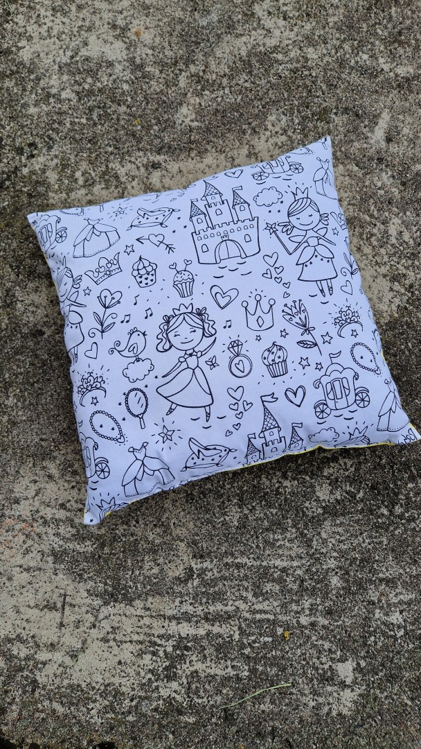 Krásný měkký polštářek, který slouží zároveň jako textilní omalovánky k vybarvování.