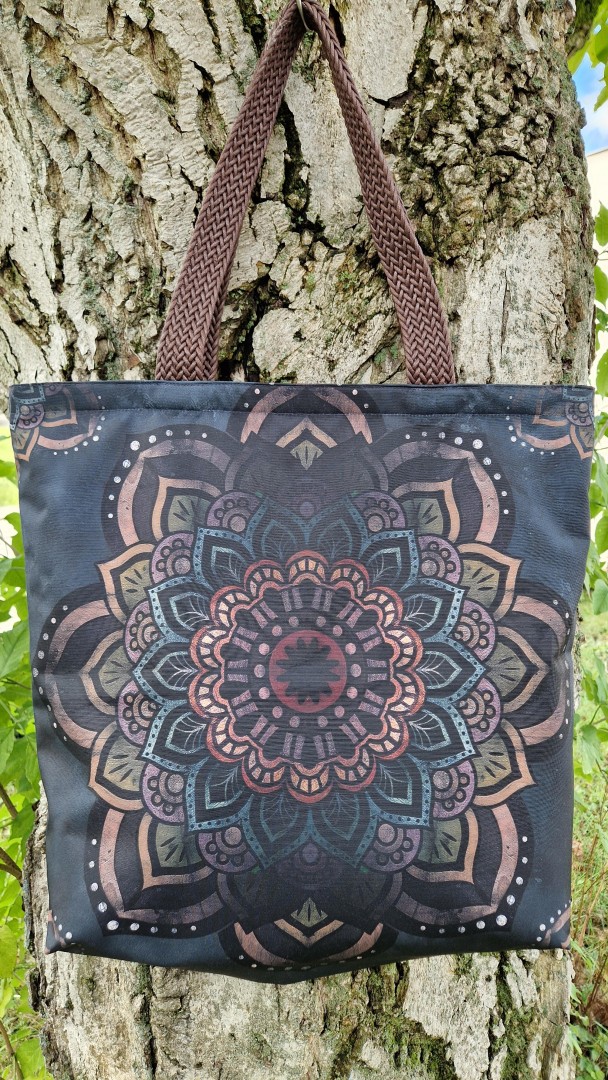 Nové taška s digitálním potiskem jsou prostorné, pevné a praktické! Ucha ze splétaného popruhu jsou pevná, ale měkká.